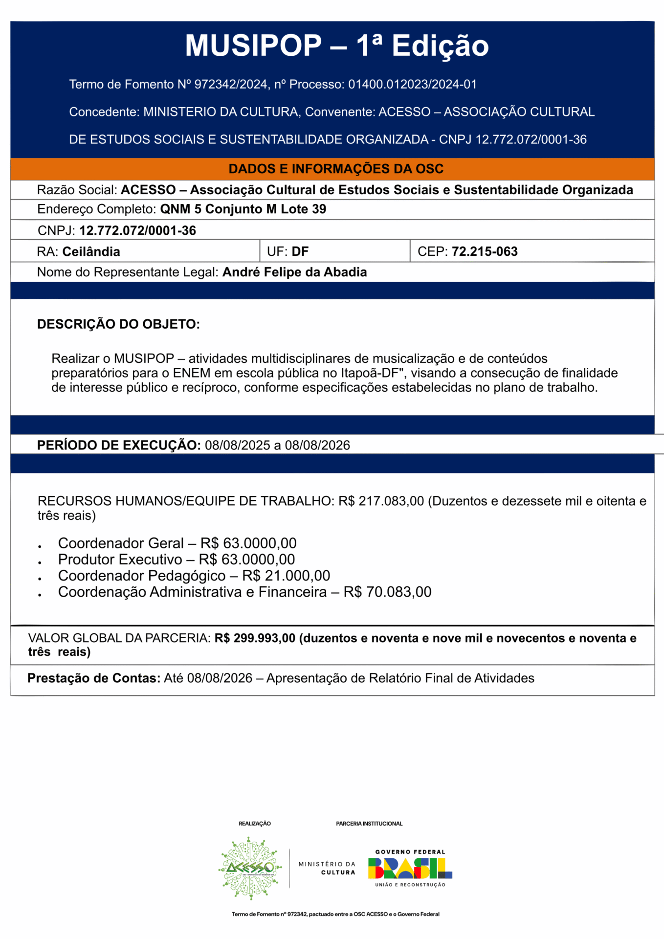 MINC TERMO DE FOMENTO Nº 942602/2023